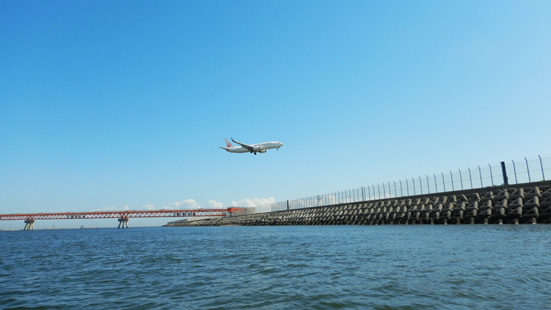 行き交う飛行機を海上から間近で観察したり、モノレールを下から見上げたり。
