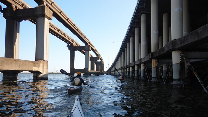 京浜運河をカヤックで漕ぎ羽田空港周辺や多摩川河口をツーリングします。