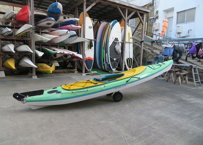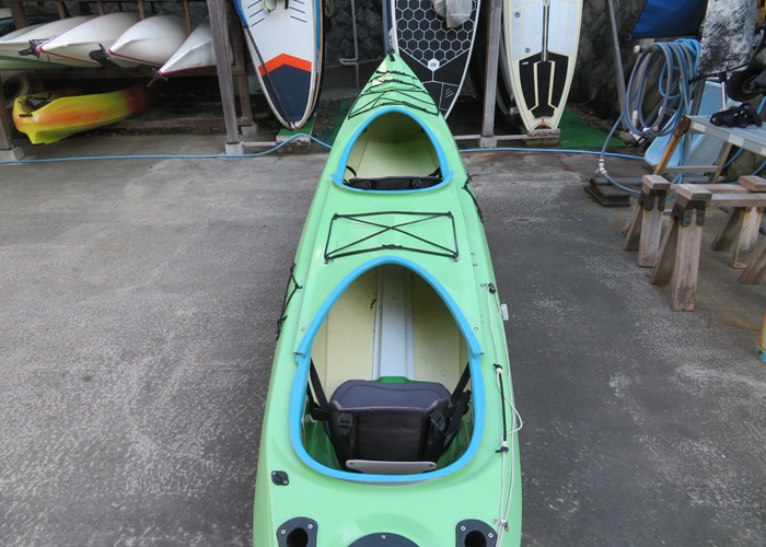| スペック | 全長:410cm 全幅:77cm 重量:約27kg 素材:FRP オプションパーツ:バウデッキ、センターデッキ、スターンデッキ、ラダー (オプションパーツの取り付けにより、1人乗り、2人乗りへ仕様を変更できます。) |