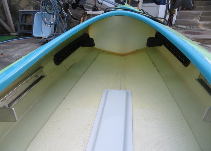 【故障個所】 ・デッキ、ハルに1か所ずつゲルコートの割れ ・シート背面のベルトを止めるビスが錆で折れている ・ラダーブレードが曲がっている いずれも修理不要でそのまま使用できます。