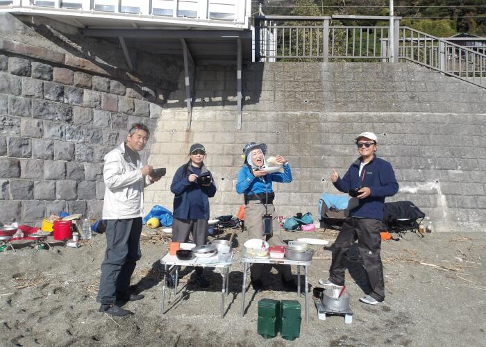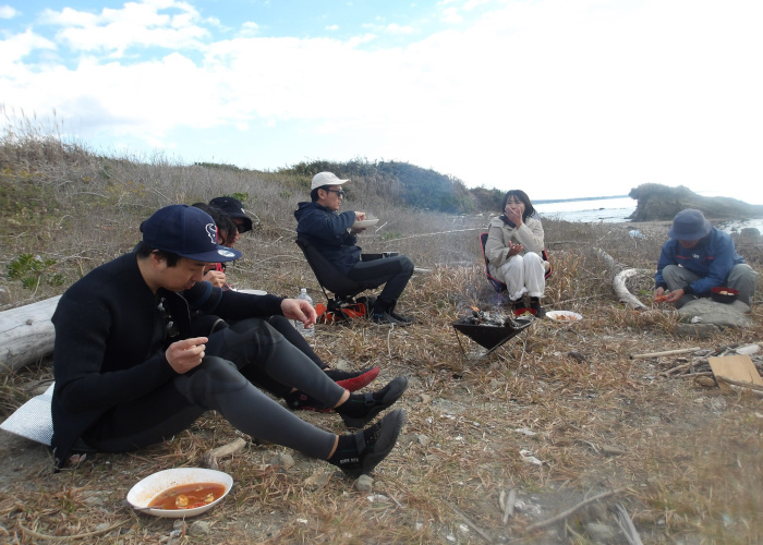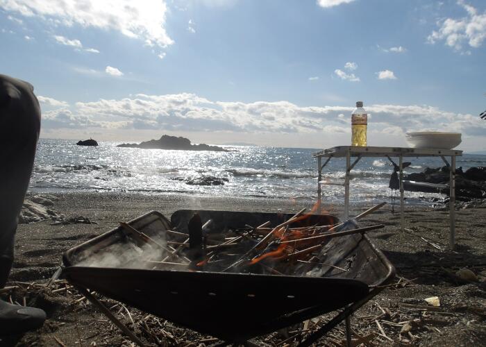 冬の海を漕ぎ、行った先の浜で焚火とアウトドアランチを楽しむツアー!